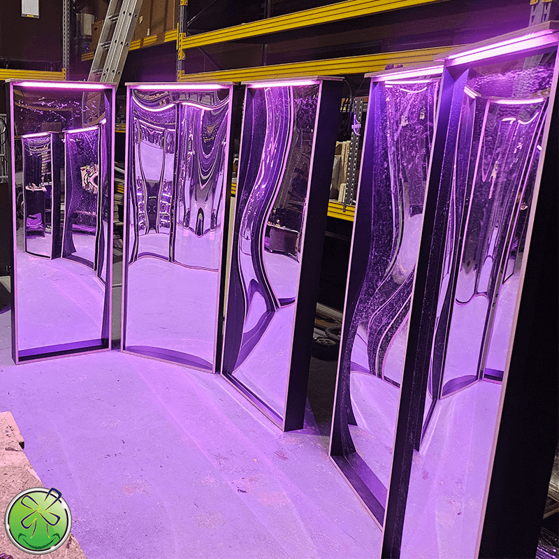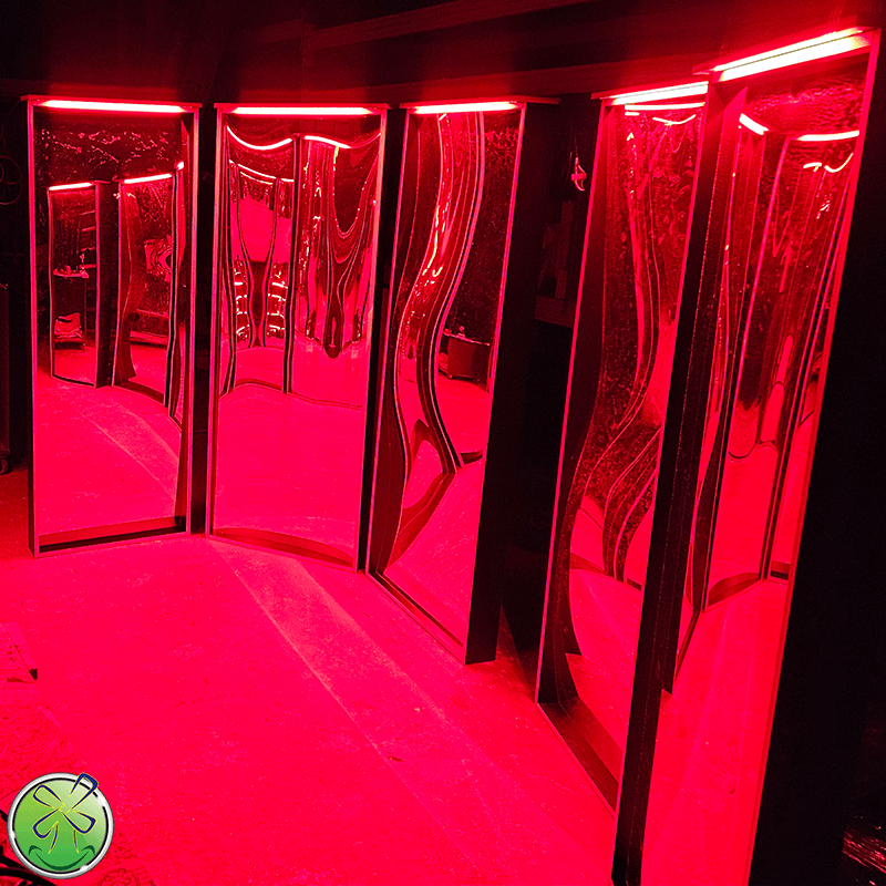 With this solution, a light cover, you can easily create light above your funhouse mirrors. It is a nice addition to slightly darker rooms and also provides an attractive visual appearance.